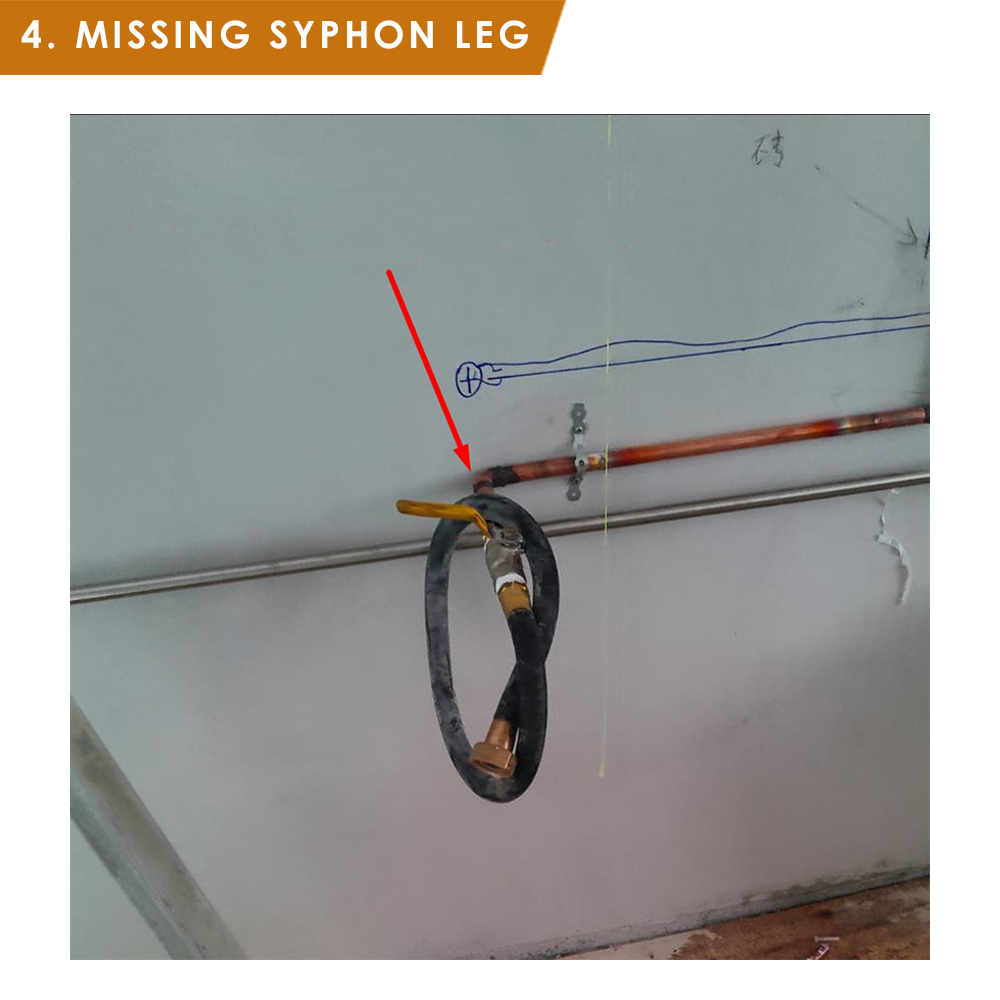 The Gas Alteration A and A Work is missing a Syphon Leg at the lowest point.